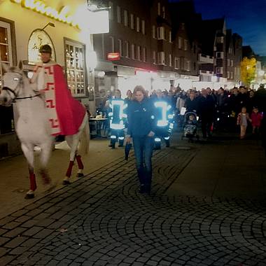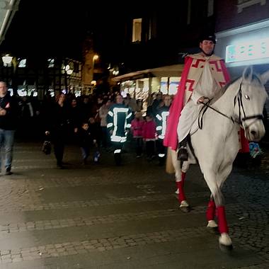 Auffällig war nur, dass Sankt Martin wohl heute auch einen Sicherheitsbeauftragten hat. Denn statt der üblichen Bischofsmütze trug er einen Reiterhelm. Aber Sicherheit geht eben vor, weshalb die Hilfe der Jugendfeuerwehr auch sehr willkommen war.