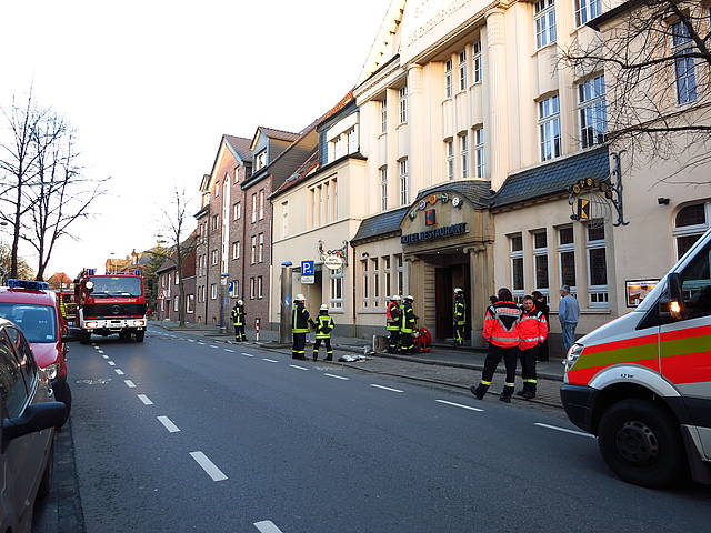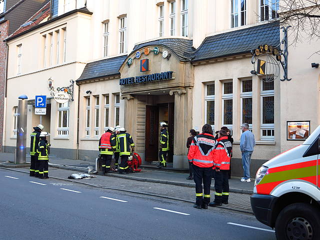 Um 15:35 Uhr wurde der Löschzug Stadtmitte mit dem Alarmstichwort „Feuer_2“ zum Kolpinghaus in der Alten Münsterstraße alarmiert. Das Fett in einer überhitzten Fritteuse hatte Feuer gefangen. Die Mitarbeiterinnen hatten die Flammen bereits mit Hilfe einer Löschdecke eingedämmt und konnten so vermutlich Schlimmeres verhindern. Trotzdem hatten die Flammen bereits auf mehrere Geräte übergegriffen, weshalb die Feuerwehr unter Atemschutz in die völlig verrauchte Küche vorgehen musste, um die Flammen mit Hilfe von zwei Feuerlöschern vollständig zu löschen. Die Einsatzkräfte entrauchten die Küche durch den Einsatz von zwei Hochdrucklüftern. Die nachfolgende Kontrolle ergab, dass die Küche durch die Rauchgase für die geplanten Angebote am Silvesterabend nicht mehr einsatzfähig ist.