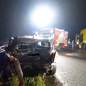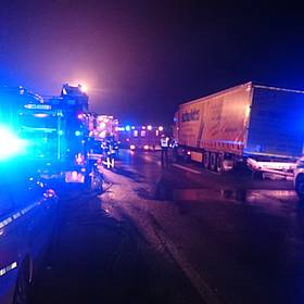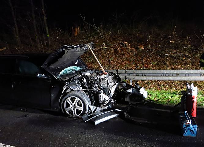 Um 04:54 Uhr wurde der Löschzug Stadtmitte mit dem Alarmstichwort „TH_Person_klemmt“ auf die Autobahn 1 in Fahrtrichtung Köln alarmiert. Kurz vor dem Parkplatz Fuchseggen kam es aus bislang ungeklärten Gründen zu einem schweren Auffahrunfall. Ein Osnabrücker PKW war auf der rechten Spur auf einen vor ihm fahrenden zweiten PKW aus Hamm mit offensichtlich hoher Geschwindigkeit aufgefahren und hatte diesen gegen einen davor fahrenden LKW geschleudert. Entgegen der ersten Meldungen war jedoch keiner der Fahrer eingeklemmt. Der LKW-Fahrer kam mit dem Schrecken davon, die beiden PKW-Fahrer wurden zunächst als leicht verletzt eingestuft und jeweils in einem Rettungstransportwagen aus Werne und Hamm versorgt und notärztlich untersucht.