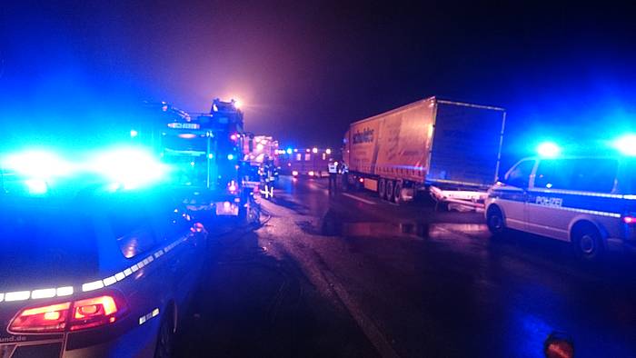 Die Feuerwehr konnte sich auf die Unterstützung der Polizei und des Rettungsdienstes beschränken. Die Unfallstelle wurde gesichert und ausgeleuchtet sowie die Fahrbahn gereinigt. Nachdem die PKW-Fahrer in Krankenhäuser nach Bockum-Hövel und Lünen transportiert waren, konnte der LKW auf den Parkplatz Fuchseggen transportiert werden und die Einsatzstelle gegen 6:00 Uhr an die Polizei übergeben werden. Für die Zeit der Rettungsarbeiten war die Autobahn in Richtung Köln voll gesperrt, aktuell laufen noch bergungsarbeiten für die die Überholspur noch gesperrt bleibt.