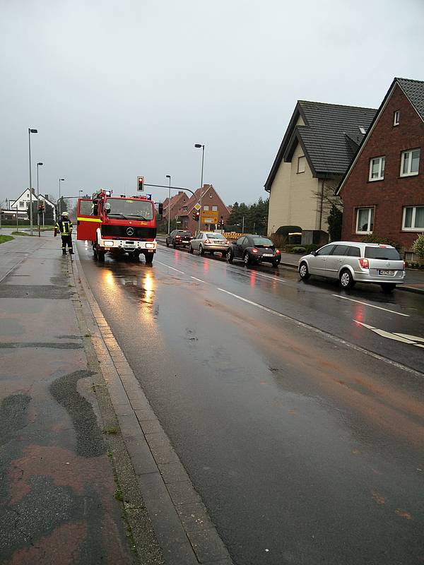 Die Feuerwehr streute die Straße mit Ölbindemittel ab, um anschließend das verunreinigte Bindemittel mittels Besen und Schaufel wieder aufzunehmen. Die Einsatzstelle wurde an die Polizei übergeben. Im Einsatz waren zehn Einsatzkräfte der Freiwilligen Feuerwehr Werne mit drei Fahrzeugen, sowie die Polizei.