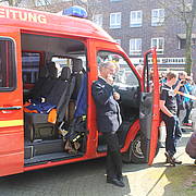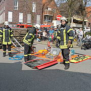 Ausgestellt und erklärt wurden am Samstag ein Rüstwagen für die technische Hilfe sowie der Einsatzleitwagen, von dem aus Einsätze koordiniert werden. Am Sonntag wurden diese Fahrzeuge durch zwei Löschfahrzeuge ergänzt, die auch in eine Schauübung einbezogen wurden. Einerseits war das erst kürzlich in Dienst gestellte Hilfeleistungslöschgruppenfahrzeug des LZ 3 aus Stockum zu besichtigen. Demgegenüber wurde das älteste Fahrzeug am Standort LZ 1 Stadtmitte präsentiert: ein Löschgruppenfahrzeug, das Anfang 2017 ebenfalls ausgetauscht wird.