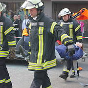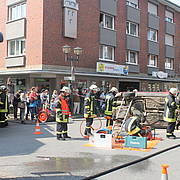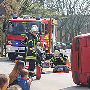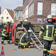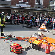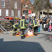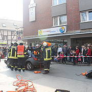 Die Übung wurde Schritt für Schritt und nachvollziehbar für die Zuschauer erläutert. Am Ende konnten alle Personen gerettet werden und die beiden Löschzüge Stockum und Stadtmitte erhielten einen wohlverdienten Applaus.