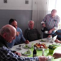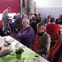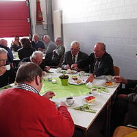 Im vom Gruppenführer Georg Jäger und seinen Kameraden freundlich gestalteten Gerätehaus Holthausen stärkte man sich mit Kaffee und Kuchen und ging dann zum benachbarten Spargelhof Bleckmann.