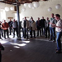 Hier wurden die Ehemaligen vom Hofbesitzer Thorsten Bleckmann zu einer ausführlichen Besichtigung begrüßt. Er vermittelte den Anwesenden einen aufschlussreichen Einblick in die historische und gegenwärtige Situation seines Betriebes, welche aktuell aus Ferienwohnungen, Spargel- und Erdbeeranbau und Event-Lokalitation besteht.