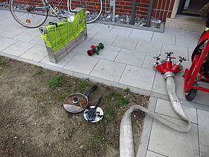 Nach dem Absuchen der Räume auf eventuelle Bewohner wurde das Essen nach draußen befördert und die Wohnung mit einer Überdruckbelüftung quer gelüftet.