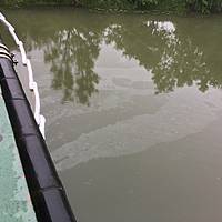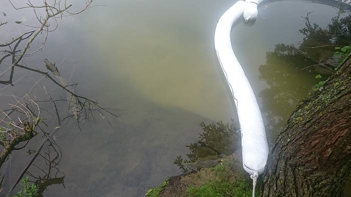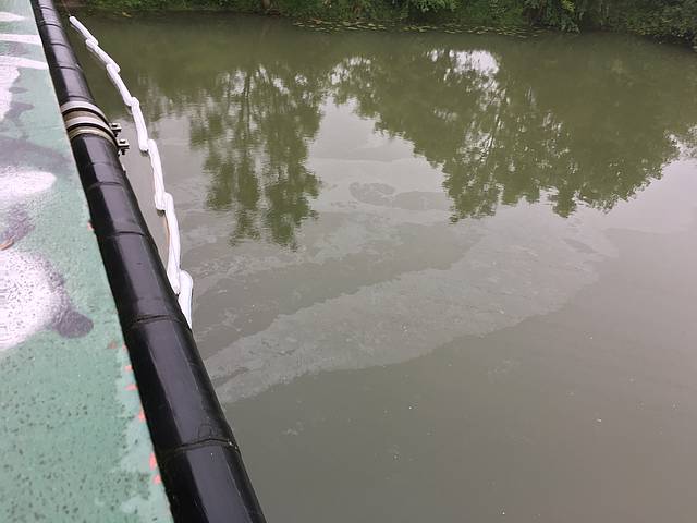 Da ein Zugang zur Lippe in diesem Bereich (Naturschutzgebiet) nur schwer möglich ist und eine Erkundung des Verursachers zunächst nicht möglich war, wurde zudem der Löschzug 3 Stockum nachalarmiert, der über ein Boot verfügt. Durch den Einsatz des Bootes konnte schnell ein alter Zulauf in Höhe des Gewerbegebietes Brede ausfindig gemacht werden. Auch eine intensivere Erkundung ergab keine weiteren Erkenntnisse über mögliche Einleitungen. Da es sich nach einer Begutachtung des Stoffes nicht um Mineralöle (Diesel, Heizöl, Hydrauliköl etc.) handeln konnte, wurde davon ausgegangen, dass es sich um Speisefett handelt. Die Vermutung passte zur Lage des Einleiters in Höhe einer alten Produktionsstätte für Backzusatzstoffe. Vermutlich hatte der Starkregen einen vor Jahren bereits verschlossenen Kanal wieder durchspült, so dass alte Produktionsreste, die im Sediment der Kanalisation gebunden waren, frei geworden sind. Nach intensiver Begutachtung durch die Untere Wasserbehörde wurde festgestellt, dass keine weiteren Umweltgefahren von diesem Stoff ausgehen. Die Behörde wird den Kommunalbetrieb Werne nun auffordern, den Kanal zu überprüfen und gegebenenfalls tätig zu werden.