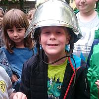 Trotz des sehr wichtigen Lerneffektes machte die Übung allen Kindern viel Spaß. Und im Anschluss konnte noch das Feuerwehrauto besichtigt werden und die „Brocken“ der Feuerwehrleute anprobiert werden. Sie waren meist noch ein bisschen groß, aber man wächst ja mit seinen Aufgaben...