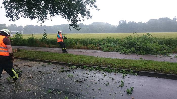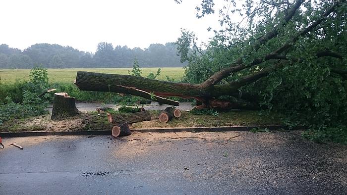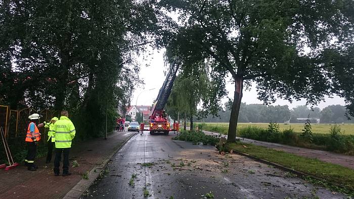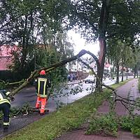 Um 10:14 Uhr wurde der Löschzug 1 der Freiwilligen Feuerwehr Werne zu einem Hilfeleistungseinsatz alarmiert. Nachdem Werne von den Unwettern der letzten Tage verschont geblieben ist, hielt eine Stieleiche im Fürstenhof den Wassermengen nicht mehr stand. Ein größerer Ast brach ab und blockierte die Straße. Schäden entstanden keine.