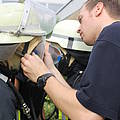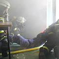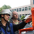 Diese zusätzliche Tücke der Übung hilft den Einsatzkräften unter erschwerten Sichtbedingungen im Realeinsatz ruhig und routiniert zu arbeiten. Spezielle Suchtechniken nach Menschen in Gebäuden, sowie die Wärmebildkamera werden jetzt angewendet, um die vermissten zwei Schüler zu suchen.