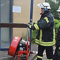 Da im Falle dieser Übung die alte Turnhalle des Freiherr-vom-Stein-Berufskollegs einer neuen und größeren Turnhalle weicht, konnte an diesem Übungsobjekt das Kaltschneidverfahren zur Übung durchgeführt werden. Ein Trupp schnitt von außen ein Loch durch die Wand und gab Wasser ins Innere des Gebäudes.