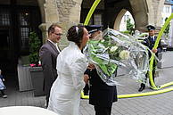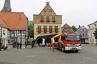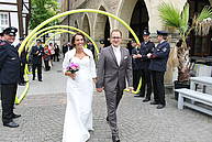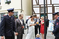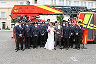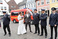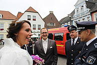 Nach einem Glas Sekt – für Kerstin „Hello Kitty-Alkoholfrei“ – und dem ein oder anderen sehr guten Wunsch für die gemeinsame Zukunft, musste er Löschzug den Marktplatz räumen. Denn es stand die nächste Hochzeit im Rathaus auf dem Programm.