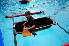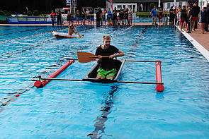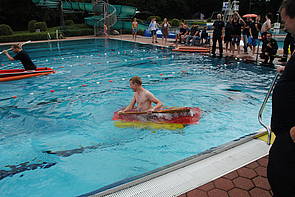 Ziel war es hierbei mit einer Badewanne das 25m lange Schwimmbecken schnellstmöglich paddelnd zu durchqueren. Die Wanne musste dafür selbstredend noch getunt und vor allem angepinselt werden da auch die schönste Wanne prämiert werden sollte. Die JF Werne trat, nach kurzer Bauzeit mit einer Art Katamaran an, die Wanne wurde mit Flammen gestaltet, Gallionsfigur war eine Gummi-Bade Ente in Form eines Feuerwehrmanns. Die Wanne bauten die Jugendlichen an 2 Abenden in der Vorwoche des Wettkampfs.