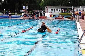 Natürlich stand nicht nur der sportliche Wettkampf auf dem Plan, auch der Spaß kam nicht zu kurz. Während in einem Teil des Sportbeckens 3 Wettkampfbahnen abgesperrt waren konnte im Restbereich und im Nichtschwimmerbecken nach Herzen gebadet und gealbert werden. Im späteren Verlauf wurde auch die Wasserrutsche geöffnet.