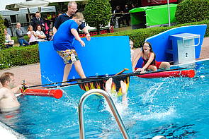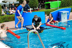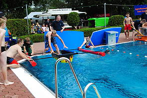 Natürlich stand nicht nur der sportliche Wettkampf auf dem Plan, auch der Spaß kam nicht zu kurz. Während in einem Teil des Sportbeckens drei Wettkampfbahnen abgesperrt waren, konnte im Restbereich und im Nichtschwimmerbecken nach Herzenslust gebadet und gealbert werden. Im späteren Verlauf wurde auch die Wasserrutsche geöffnet.