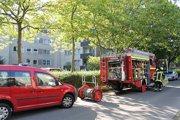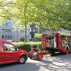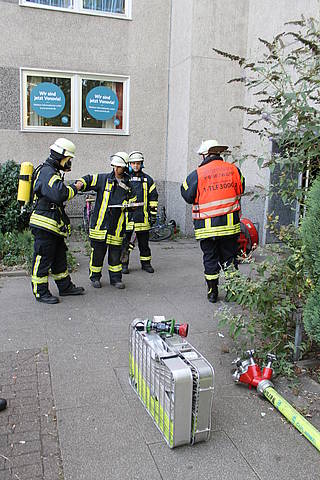 Um 16:32 Uhr - nur eine Stunde nach dem letzten Einsatz - rief der Funkmeldeempfänger die freiwilligen Kräfte erneut auf den Plan. Gemeldet wurde ein ausgelöster Rauchmelder im Beckingshof. Aufgrund der Bebauung und der Anzahl der dort gemeldeten Personen in diesem Wohngebäude, wurde der Löschzug 1 aus der Stadtmitte sowie der Löschzug 3 aus Stockum alarmiert. Die ersten Einsatzkräfte verschafften sich unter schwerem Atemschutz einen Zugang zu der Wohneinheit und konnten angebranntes Essen im Backofen schnell als Ursache des ausgelösten Rauchmelders identifizieren. Es wurde standardmäßig ein Sicherheitstrupp unter Atemschutz gestellt sowie eine Wasserversorgung bis vors Gebäude aufgebaut. Das stark qualmende, verbrannte Essen aus dem Backofen wurde kurzerhand über den Balkon ins frei befördert sowie die Wohnung und das Treppenhaus mit dem Hochdrucklüfter zwangsbelüftet. Da die Lage relativ schnell Übersichtlich wurde, konnten die Kräfte aus Stockum, sowie das Vorauslöschfahrzeug Cobra und die damit verbundenen Rünther Einsatzkräfte die Einsatzfahrt abbrechen.