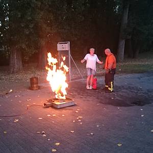 Jedoch gab es neben den drei Einsätzen auch "Erbauliches". Zunächst war am Freitag, den 09.09.2016 das Crash Kurs Team NRW zu Gast an der Feuerwache Stadtmitte. Drei freiwillige Helfer des Löschzugs Stadtmitte sind gleichzeitig Mitglieder im Crash Kurs-Team und berichten regelmäßig in den Schulen des Kreises Unna von ihren – oft belastenden - Erlebnissen an Unfallstellen mit jungen Fahranfängern. Das Crash Kurs-Team hatte sich Verstärkung mitgebracht, so dass nach einer Radtour des Verkehrsdezernates durch den Kreis Unna der Abschluss auf dem Grillplatz an der Feuerwache Mitte stattfinden konnte. Beste Temperaturen bedingten eine tolle Stimmung und die Verführungen des Sonderlöschfahrzeugs Cobra, der Feuerlöschtrainer und die Drehleiter im Standort brachten zudem "Feuerwehrtechnisches" in die Veranstaltung ein und stießen auf großes Interesse.