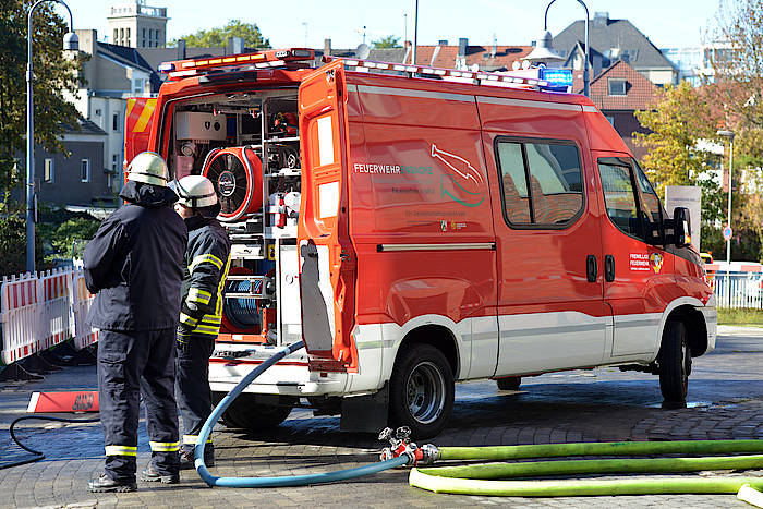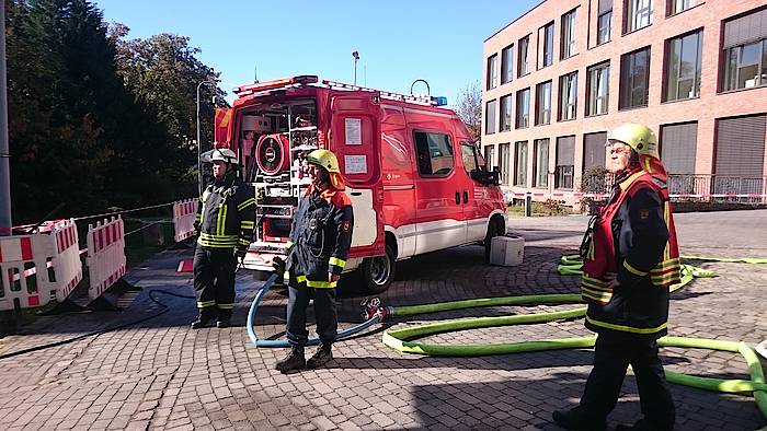 Aufgabe in Herne war es, von außen außerhalb des Trümmerschattens eine Zwischendecke zu erreichen, in der immer wieder Flammen aufloderten. Da das Gebäude aber nicht betreten werden könnte, musste eine Lösung gefunden werden, das Feuer von außen zu bekämpfen.