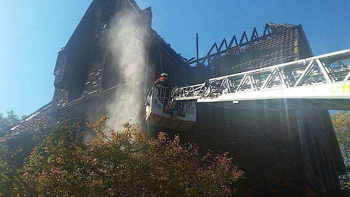 Um 11:31 Uhr wurden die Freiwilligen Feuerwehren aus Bergkamen und Werne am heutigen Sonntag (16.10.2016) zu einer überörtlichen Unterstützung nach Herne alarmiert. Dort hatte die Feuerwehr Herne aus bislang ungeklärter Ursache in den letzten beiden Tagen mit einem Brand in einem ehemaligen Pfarrhaus zu kämpfen. Die Nachlöscharbeiten gestalteten sich in dem alten Gebäude schwierig, da es teilweise einsturzgefährdet ist.