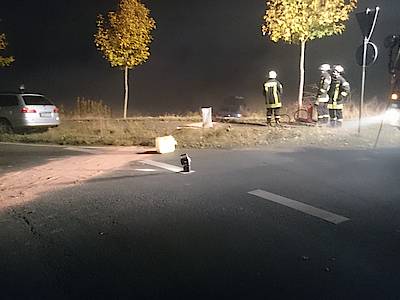 Nachdem das Fahrzeug durch einen Abschleppdienst aus dem Acker gezogen war, konnte der Schaden weiter begutachtet werden. Die Behörden entschieden, die kontaminierten Bereiche zunächst mit einer Silofolie abzudecken, wonach sie am heutigen Morgen ausgekoffert werden sollten.