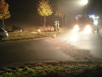 Am gestrigen Abend (17.10.2016) wurde der Löschzug 1 der Freiwilligen Feuerwehr Werne um 21:23 Uhr zu einer "Ölspur, verursacht durch einen Golf" - so der Meldungstext - alarmiert. Vor Ort fanden die Einsatzkräfte einen verunfallten Golf vor, der sich ca. einen Meter unterhalb des Straßenniveaus auf einem Acker befand. Der Fahrer des PKW war nicht verletzt und sagte aus, dass er in den Kreisverkehr einfahrend, einem Tier ausgewichen sei. Dadurch ist er in die Mittelbegrünung des Kreisverkehrs geraten und hat vor der Böschung zum Acker nicht mehr bremsen können.