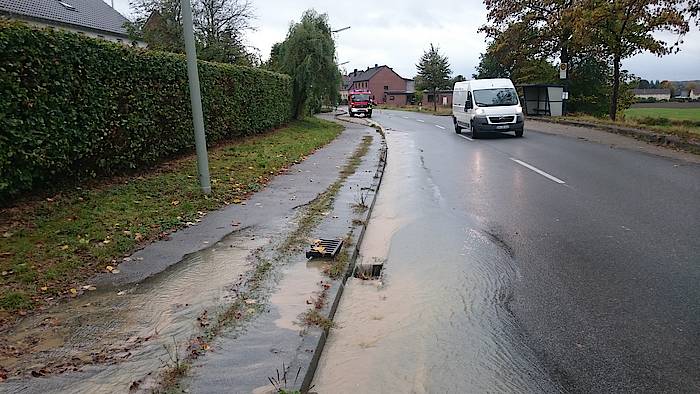 Um 17:07 Uhr wurde der Löschzug 1 der Freiwilligen Feuerwehr Werne am heutigen Mittwoch (19.10.2016)zu einem vermuteten Wasserrohrbruch in den Nibelungenring alarmiert. Vor Ort bestätigte sich die Vermutung, denn das Wasser floss in stetigem Strom bereits auf die Horster Straße. Ein defekter Hausanschluss im Nibelungenring war der Grund dafür. Zunächst sicherte die Feuerwehr die Horster Straße, um etwaige Unfälle durch Aquaplaning zu vermeiden. Zusätzlich wurden mehrere Gullies gezogen und gereinigt, um den Wasserabfluss sicher zu stellen.