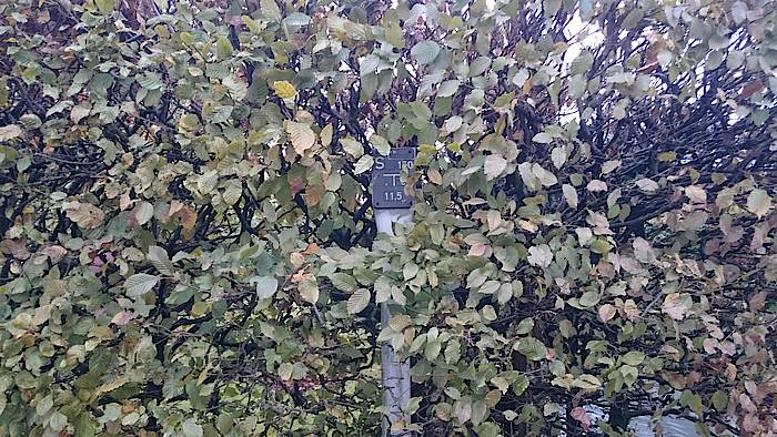 Mit Hilfe des Planwerks konnte der korrekte Schieber schnell gefunden werden. Das zugehörige Hinweisschild befand sich etwas zugewachsen in einer Hecke, so dass es nicht auf Anhieb gefunden wurde.