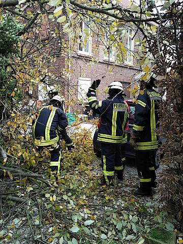 Um 14:20 Uhr wurde der Löschzug 1 der Freiwilligen Feuerwehr Werne in den Friedstein gerufen. Dort war durch den Wind die Krone eines Baumes abgeknickt und begrub einen darunter geparkten Kleintransporter. Da sich der Baum auf privatem Grund befand und keine direkte Gefahr mehr von ihm ausging, wurde entschieden, nur den Weg der als Zugang zu einem dahinter liegendem Gebäude diente, freizuschneiden.