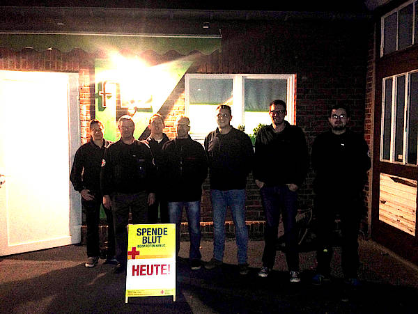 Mitunter zwei "Neulinge" im Blutspenden: Michael Biegel (zweiter von rechts) und Ralf Sudmann (vierter von links), welche wie ihre Mitstreiter die Spende hervorragend gemeistert und überstanden haben.