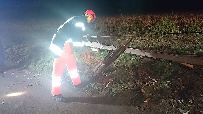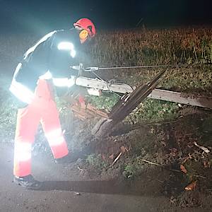 Erst um 4:02 Uhr am Neujahrstag kam es zum ersten Einsatz des Jahres. Eine PKW-Fahrerin war auf der Burbankstraße aus bislang nicht geklärter Ursache von der Fahrbahn abgekommen und war mit einem Telegraphenmast kollidiert. Der Aufprall war so heftig, dass der Mast abknickte. Die Frau wurde beim Eintreffen der Feuerwehr bereits vom Rettungsdienst versorgt und mit leichten Verletzungen in ein Krankenhaus zur weiteren Kontrolle verbracht. Die Aufgabe der Feuerwehr bestand in der Sicherung des Mastes und der Aufnahme auslaufender Betriebsstoffe.