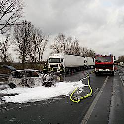 Das ebenfalls ausgerückte Tanklöschfahrzeug mit seinen 3000 Litern Wasser an Bord sicherte die Löschwasserversorgung auf der Autobahn.