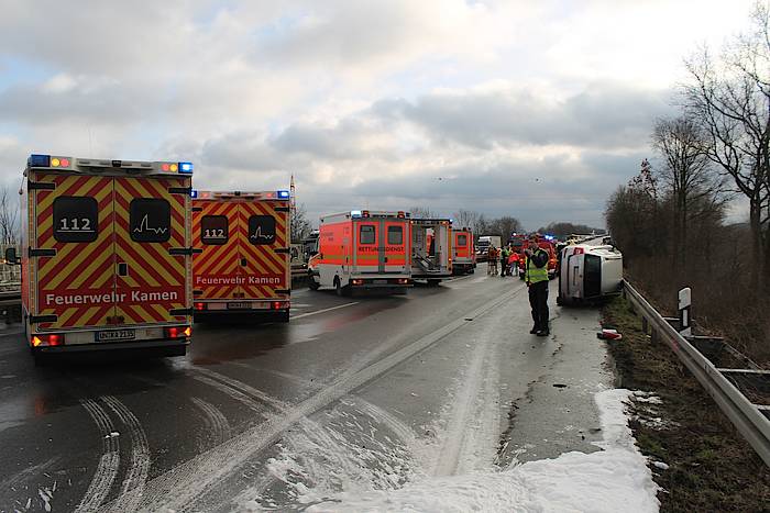 Im Einsatz waren 21 freiwillige Kräfte des Löschzugs 1 der Freiwilligen Feuerwehr Werne mit vier Fahrzeugen, der Rettungsdienst mit fünf Rettungstransportwagen, mehrere Notärzte darunter einer im Rettungshubschrauber sowie die Autobahnpolizei. Nach dem säubern der Gerätschaften am Gerätehaus hieß es nach zwei Stunden um 16 Uhr Einsatzende für die Freiwillige Feuerwehr Werne.