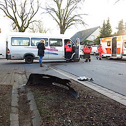 Ebenso wurden die unverletzten Schüler im Bus betreut. Aufgrund des Einsatzstichwortes und der zunächst unbekannten Anzahl an möglichen Verletzten, wurde zusätzlich zum Notarzt der Organisatorische Leiter des Rettungsdienstes alarmiert. Da der Kleinbus nicht mehr fahrbereit war, organisierte die Transportgesellschaft kurzfristig Ersatzfahrzeuge.