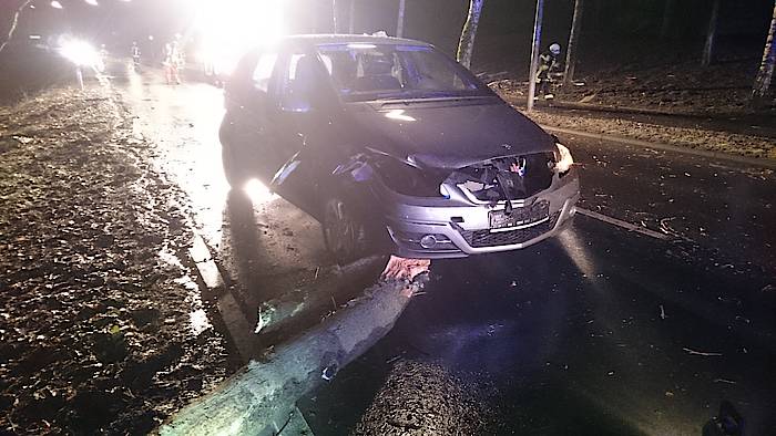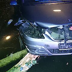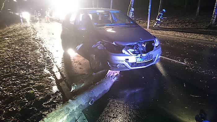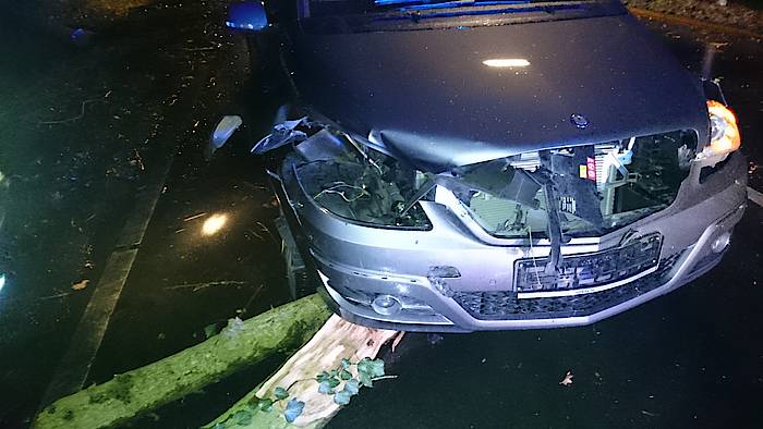 Glück im Unglück hatte ein PKW-Fahrer am Goetheweg in Höhe des Anne-Frank-Gymnasiums: Gegen 22:25 Uhr stürzte ein Baum aus dem Stadtwald genau vor sein Fahrzeug. Der Fahrer konnte nicht mehr ausweichen oder rechtzeitig bremsen und kollidierte mit dem Hindernis. Es entstand lediglich Sachschaden. Wäre der Baum jedoch nur eine Sekunde später umgestürzt, hätte er vermutlich die Fahrerkabine getroffen. Der sichtlich erschrockene Herr wurde zunächst von Freunden betreut, der Löschzug Mitte entfernte den Baum von der Straße, reinigte diese und fuhr das immerhin noch fahrbereite Fahrzeug auf den Parkplatz am Anne-Frank-Gymnasium. Nach 35 Minuten konnte die Sperrung des Goethewegs aufgehoben und die Einsatzstelle an die Polizei übergeben werden.