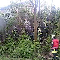 Aufwendig war es, das Brandgut auseinander zu ziehen. Auch konnte an der Gartenhütte bei der intensiveren Kontrolle per Wärmebildkamera doch größere Schäden festgestellt werden. Glutnester waren aber nicht mehr zu erkennen und eine Brandgefahr konnte ausgeschlossen werden.