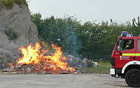 Nach Rücksprache mit der Polizei und dem Eigentümer wurde der Stapel unter Aufsicht kontrolliert abgebrannt.