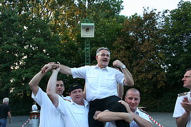 Zum Glück wurde jedoch die Hilfe der Feuerwehr nicht in Anspruch genommen, und alle Anwesenden konnten ruhig feiern. Getreu dem doppelten Motto "Ein dreimal kräftiges Horrido und Gut Schlauch!" StHi